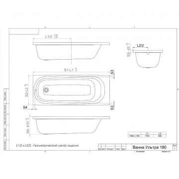 Ванна прямоугольная Тритон (Triton) акриловая Ультра 1800х700х560 мм (Щ0000048586) (без монтажного комплекта/ножек, с полкой)