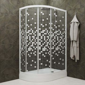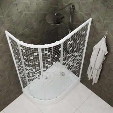 Душевой уголок Тритон (Triton) Коралл 800х1200х1915 мм, прозрачный,с рисунком 4 мм, профиль белый (Щ0000061781) А правая мозаика (2 места+сифон D90)