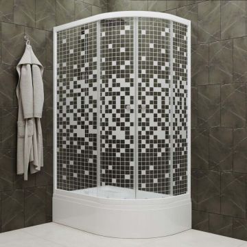 Душевой уголок Тритон (Triton) Коралл 800х1200х2055 мм, прозрачный,с рисунком 4 мм, профиль белый (Щ0000061782) В левая мозаика (2 места+сифон D50)