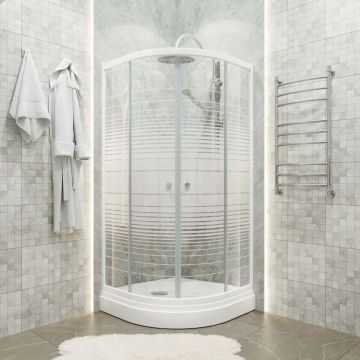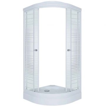 Душевой уголок Тритон (Triton) Полосы 900х900х1910 мм, прозрачный,с рисунком 4 мм, профиль белый (Щ0000061805) А (3 места+сифон D90)