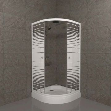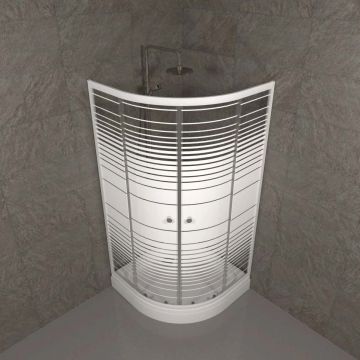 Душевой уголок Тритон (Triton) Полосы 1000х1000х2050 мм, прозрачный,с рисунком 4 мм, профиль белый (Щ0000061793) А (3 места+сифон D90)