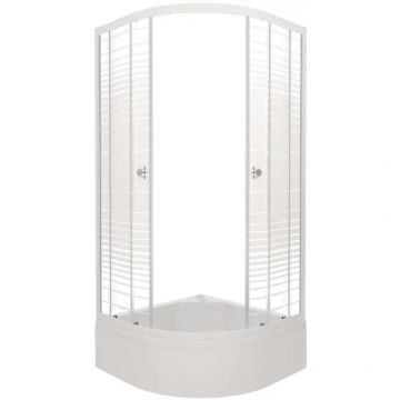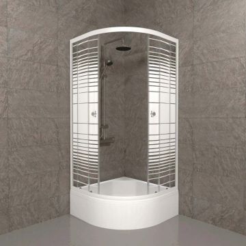 Душевой уголок Тритон (Triton) Полосы 1000х1000х2050 мм, прозрачный,с рисунком 4 мм, профиль белый (Щ0000061787) В (3 места+сифон D50)