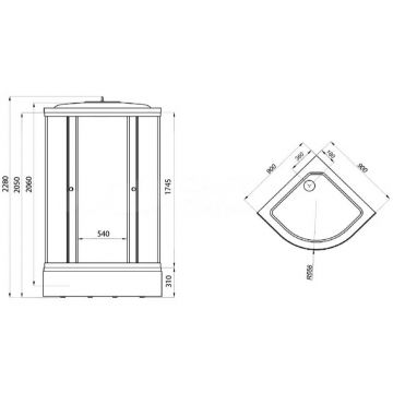 Душевой уголок Тритон (Triton) Лайт 900х900х2280 мм, прозрачный 4 мм, профиль белый (Щ0000061813) В (3 места+сифон D50)