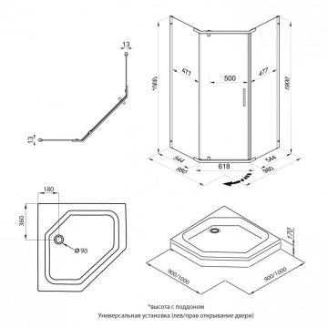 Тип установки:на поддон, пристенный в угол p>